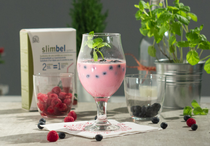 Do wysokiego naczynia wlać mleko, dodać saszetkę koktajlu Slimbel i dokładni...